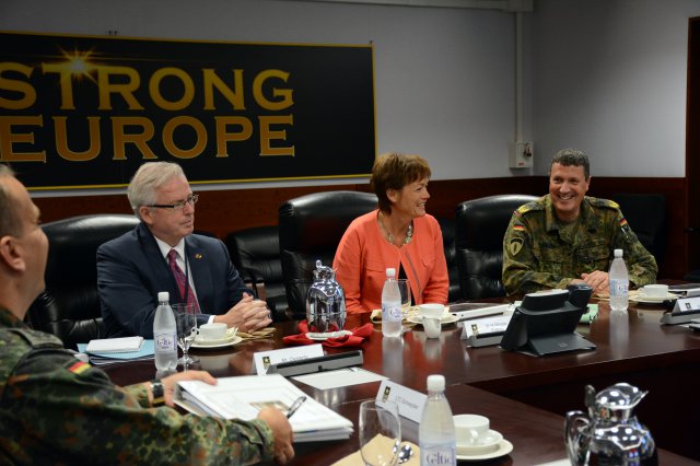Ministerin Lucia Puttrich, the Hessian Ministerin for European and Federal Affairs visited the US Army Centre Europe and met with Brigadier General Markus Laubenthal the Chief of Staff U.S Army Europe, Lt. Gen. Ben Hodges the Commander of Army Europe, and his staff.