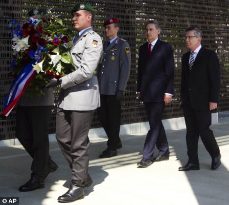 The Secretary Defence of UK Herr Philip Hammond with Minister of Defence of Germany Dr.Thomas de Maiziere in wreath laying ceremony to honour German soldiers killed in action, Berlin. May 2012 ©Ap/dailymail.uk